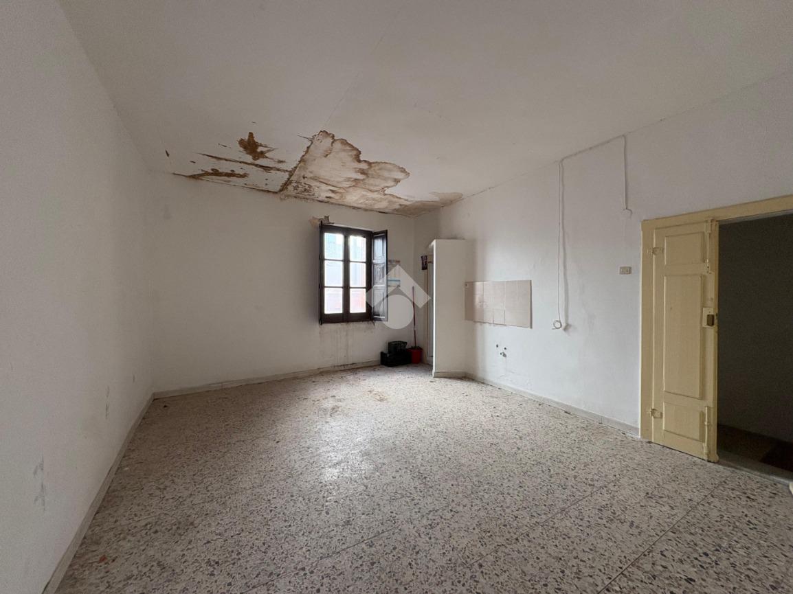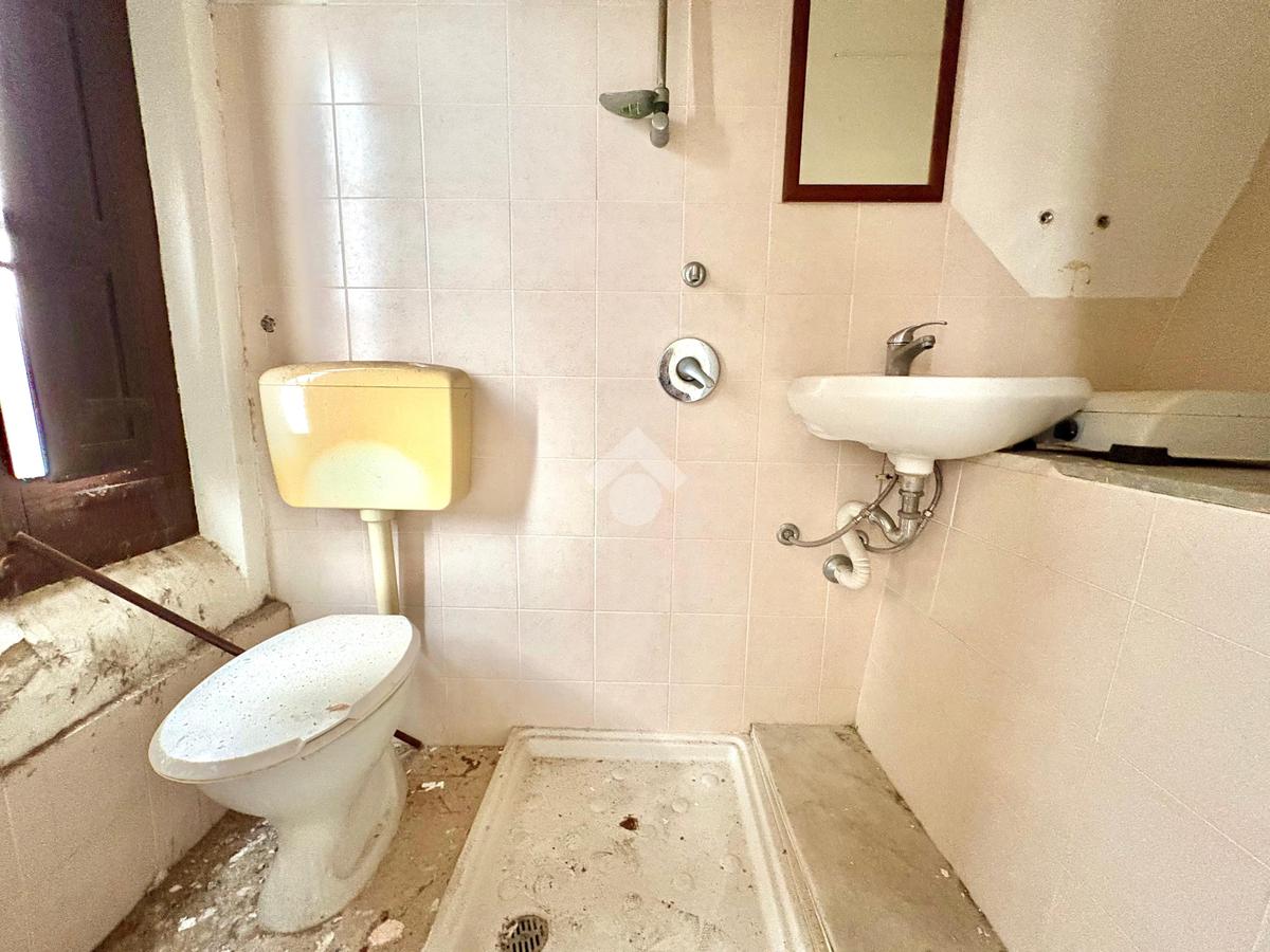 Il bagno, attualmente da rivedere, potrà essere trasformato in un ambiente completo e funzionale grazie a un intervento di ristrutturazione più approfondito.