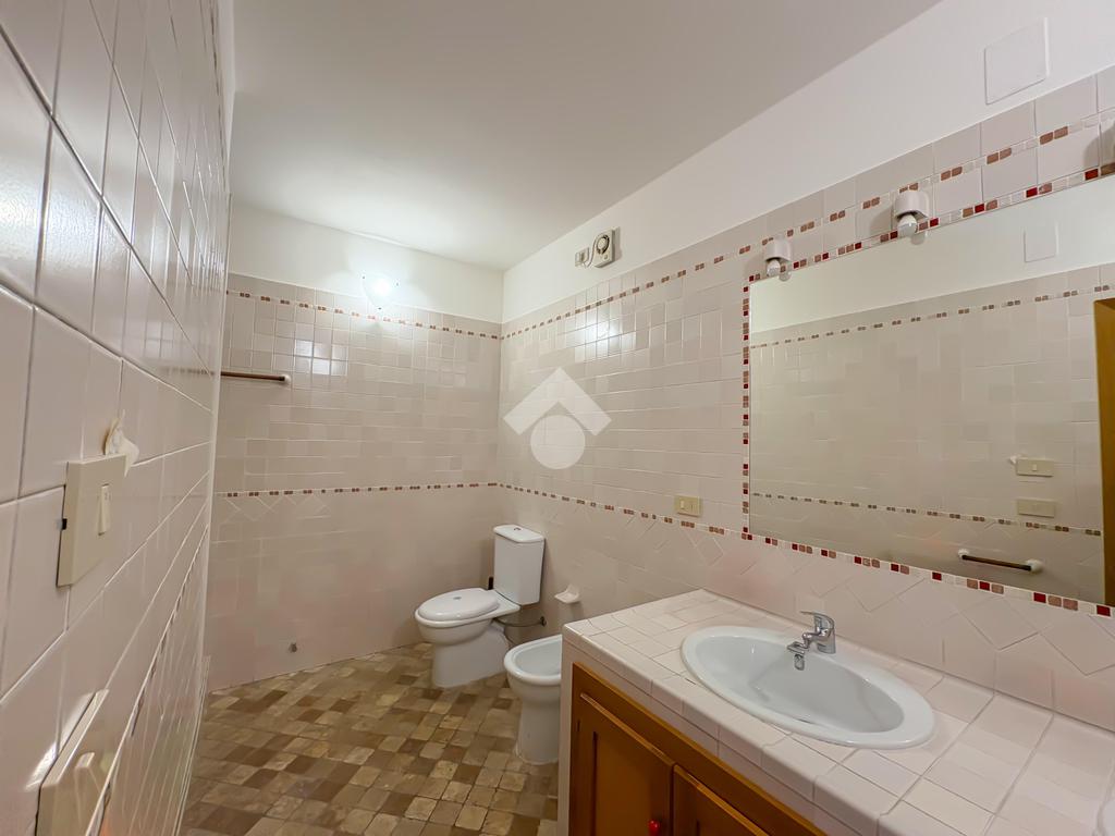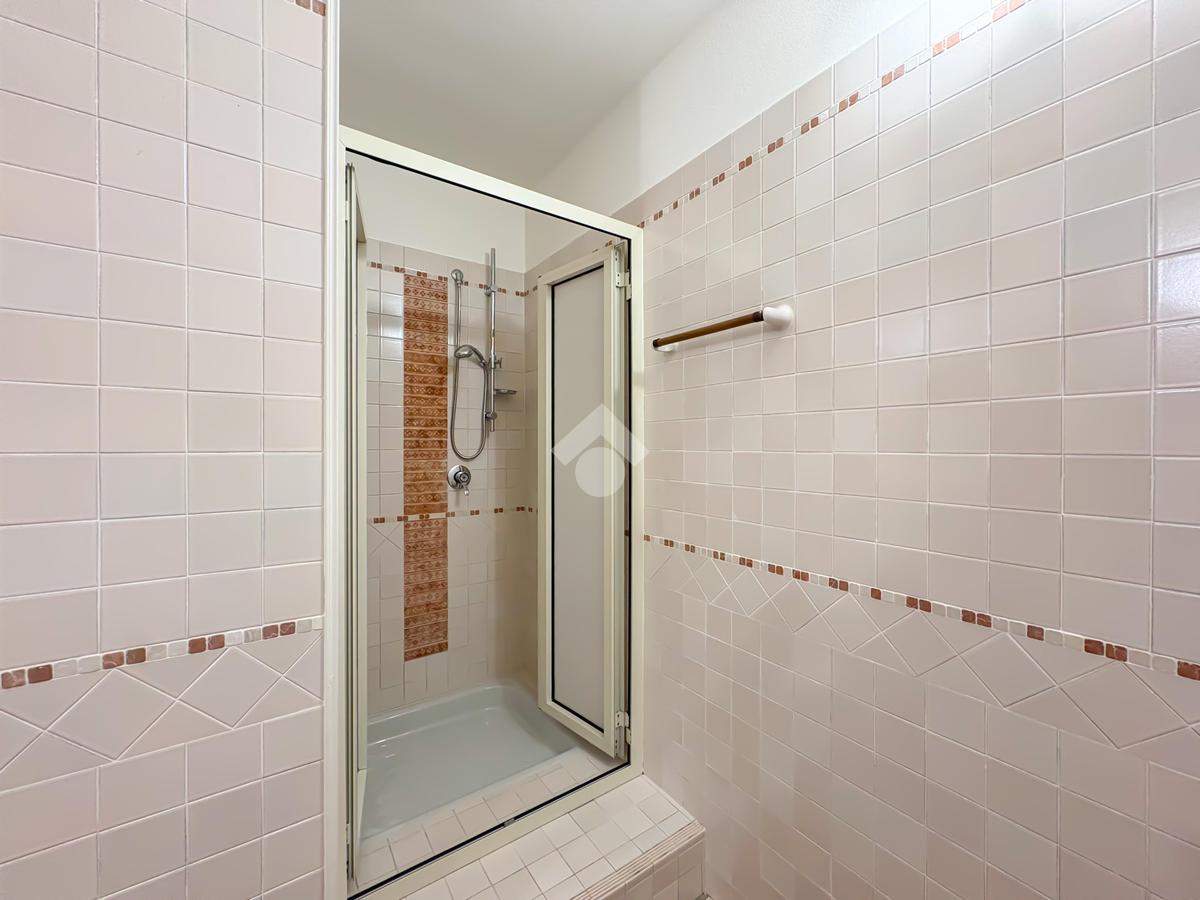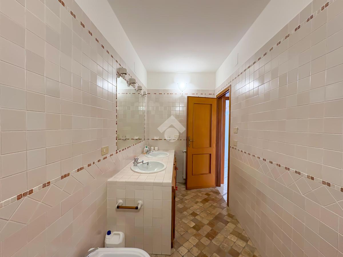 In questa parte della casa troviamo anche l’unico bagno dell’abitazione: un ambiente molto spazioso, dotato di ventilazione forzata, doppio lavabo e ampio box doccia.