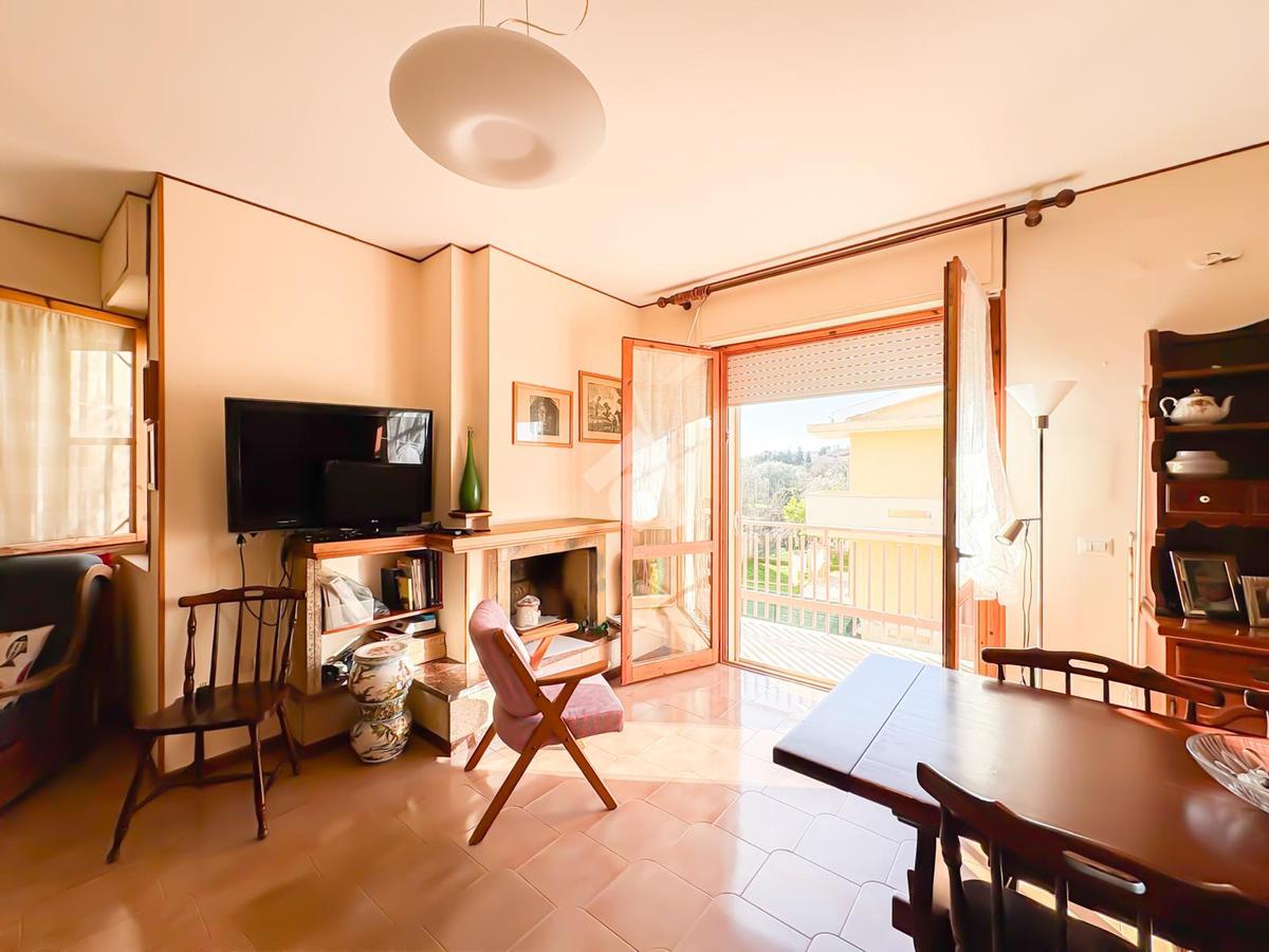 La zona giorno si sviluppa in un ampio soggiorno, impreziosito da un elegante caminetto che dona carattere e calore all’ambiente. La luminosità naturale è assicurata dalla porta-finestra che conduce al balcone abitabile, ideale per piacevoli momenti conviviali all’aperto durante la stagione estiva.