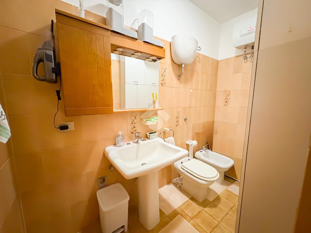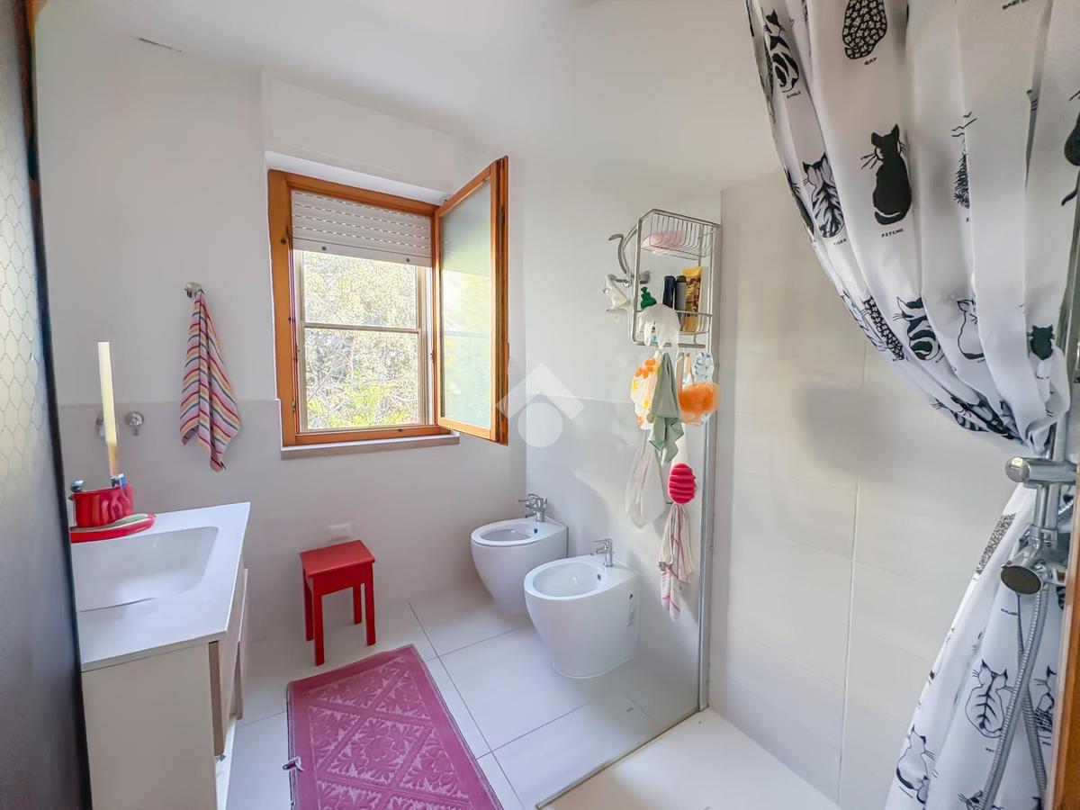 A corredo di questa area è presente il bagno principale, completo di tutti i sanitari e di un ampio box doccia, ristrutturato recentemente e caratterizzato da finiture moderne.
