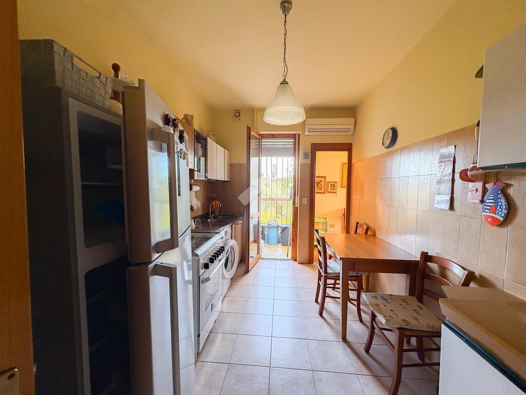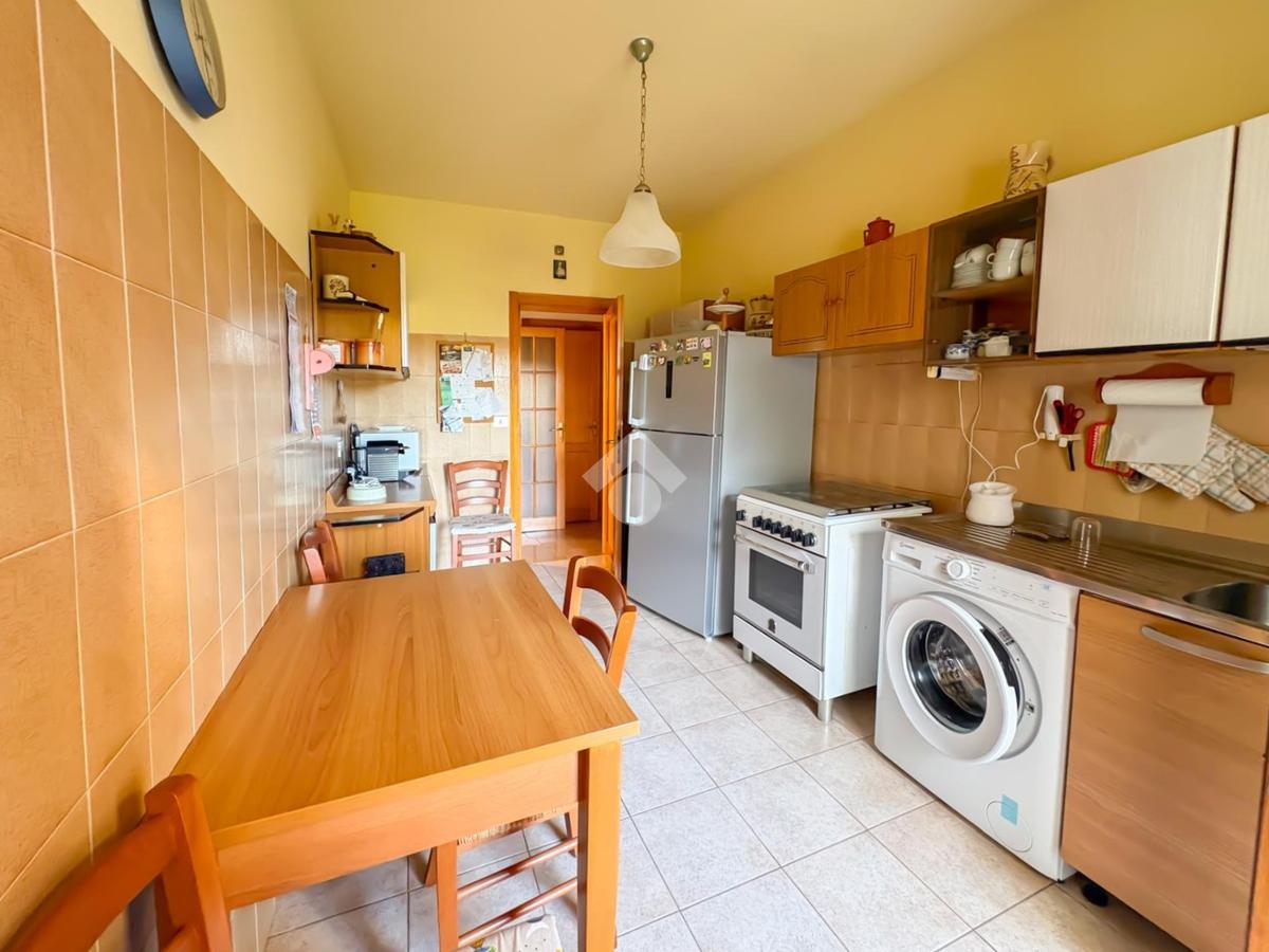 La cucina, collocata in un ambiente separato, è spaziosa e funzionale ed è completata da un pratico balconcino di servizio.